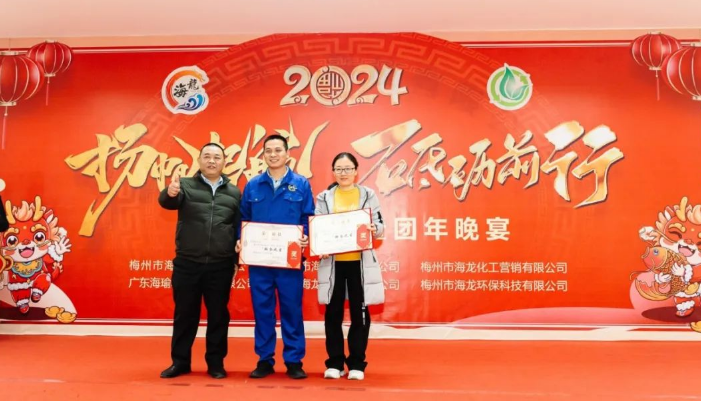 龍偉國副總為優(yōu)秀干部(李偉新、賴文彬、陳杏娜)頒獎