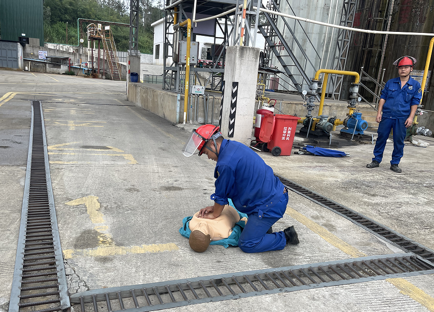 為進(jìn)一步提高員工安全意識(shí),增強(qiáng)人員觸電、被化學(xué)品灼傷及受限空間的應(yīng)急處置和滅火器實(shí)操的能力,結(jié)合公司實(shí)際,2024年9月26日下午,海龍化工在化工廠區(qū)進(jìn)行安全生產(chǎn)應(yīng)急演練。