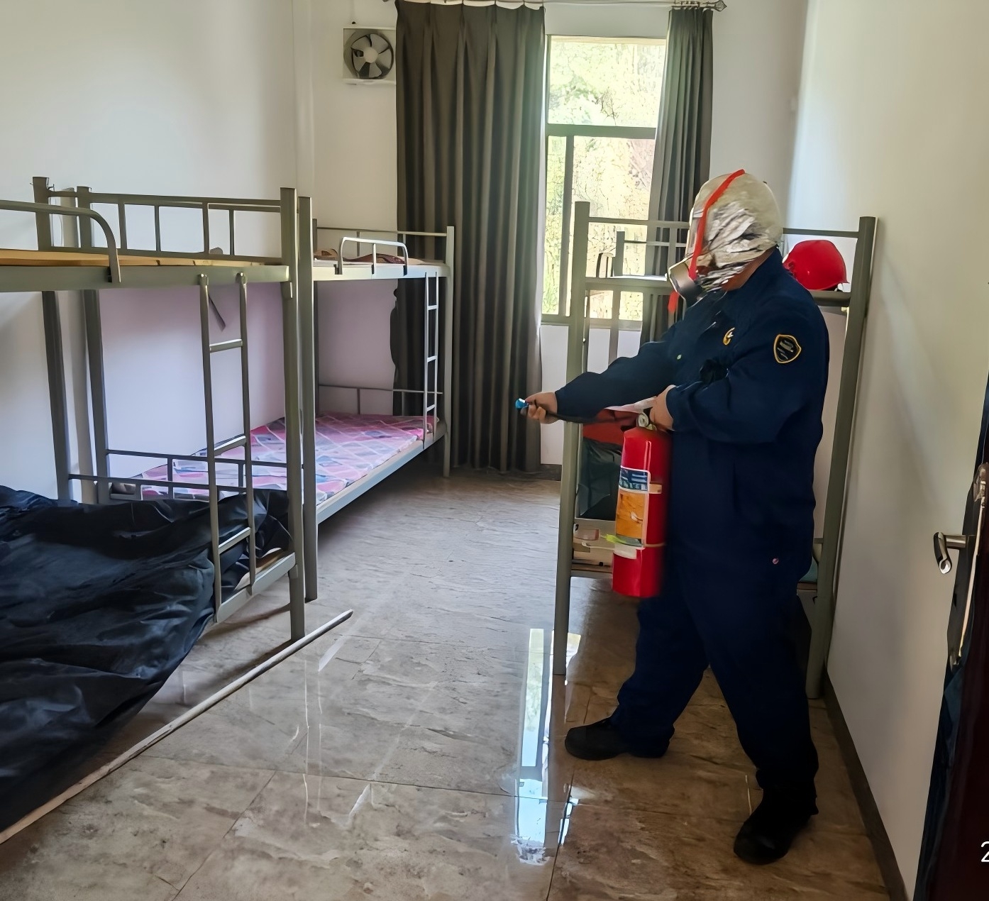 排查人員趕赴現(xiàn)場(chǎng)后發(fā)現(xiàn),由于過(guò)載使用排插,導(dǎo)致起火,并點(diǎn)燃床單被褥,宿舍內(nèi)午休人員正在熟睡,吸入濃煙后昏迷。立即向中控值班人員反饋情況,隨后中控室立即向車(chē)間主任匯報(bào)險(xiǎn)情,車(chē)間主任接報(bào)后立即啟動(dòng)現(xiàn)場(chǎng)級(jí)應(yīng)急預(yù)案并趕赴現(xiàn)場(chǎng)指揮救援。